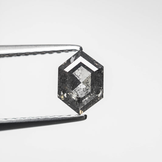 This 0.83ct natural, untreated salt and pepper diamond is expertly cut in a sleek hexagon...
