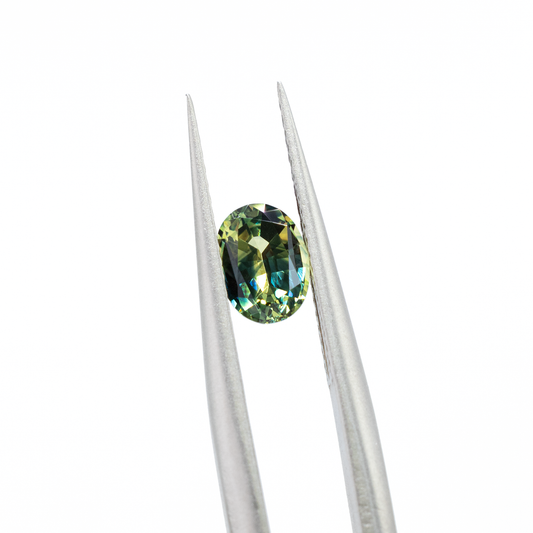 This 0.48ct heat-treated parti color Australian sapphire showcases a stunning blend of teal and green...