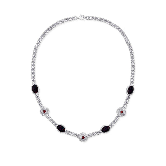 Inspired by the fiery glow of dusk, the Crimson Twilight Ring alternates between natural garnet...