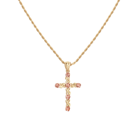 Infuse your jewelry collection with grace and spirituality with our Rose Kissed Cross Necklace, featuring...