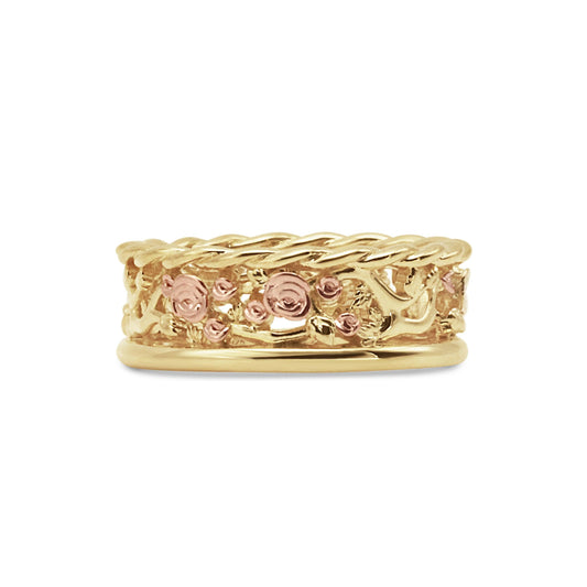 This Rose Garden Ring radiates enchantment; its floral design, fine details, and two-tone hue generate...
