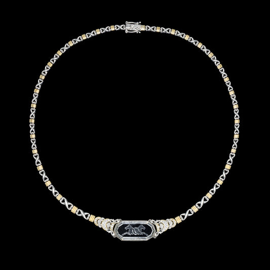 The Hippocampi Necklace captures the spirit of myth and the sea — two mirrored hippocampi,...