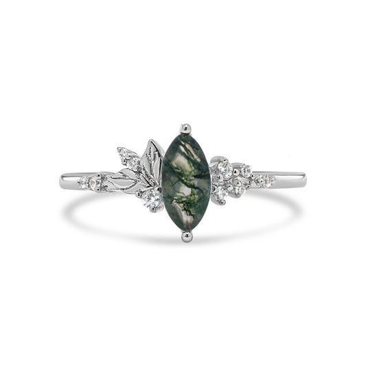 Indulge in nature's serenity with the Moss Agate Eden Ring. Its sweet leaf motifs, gentle...