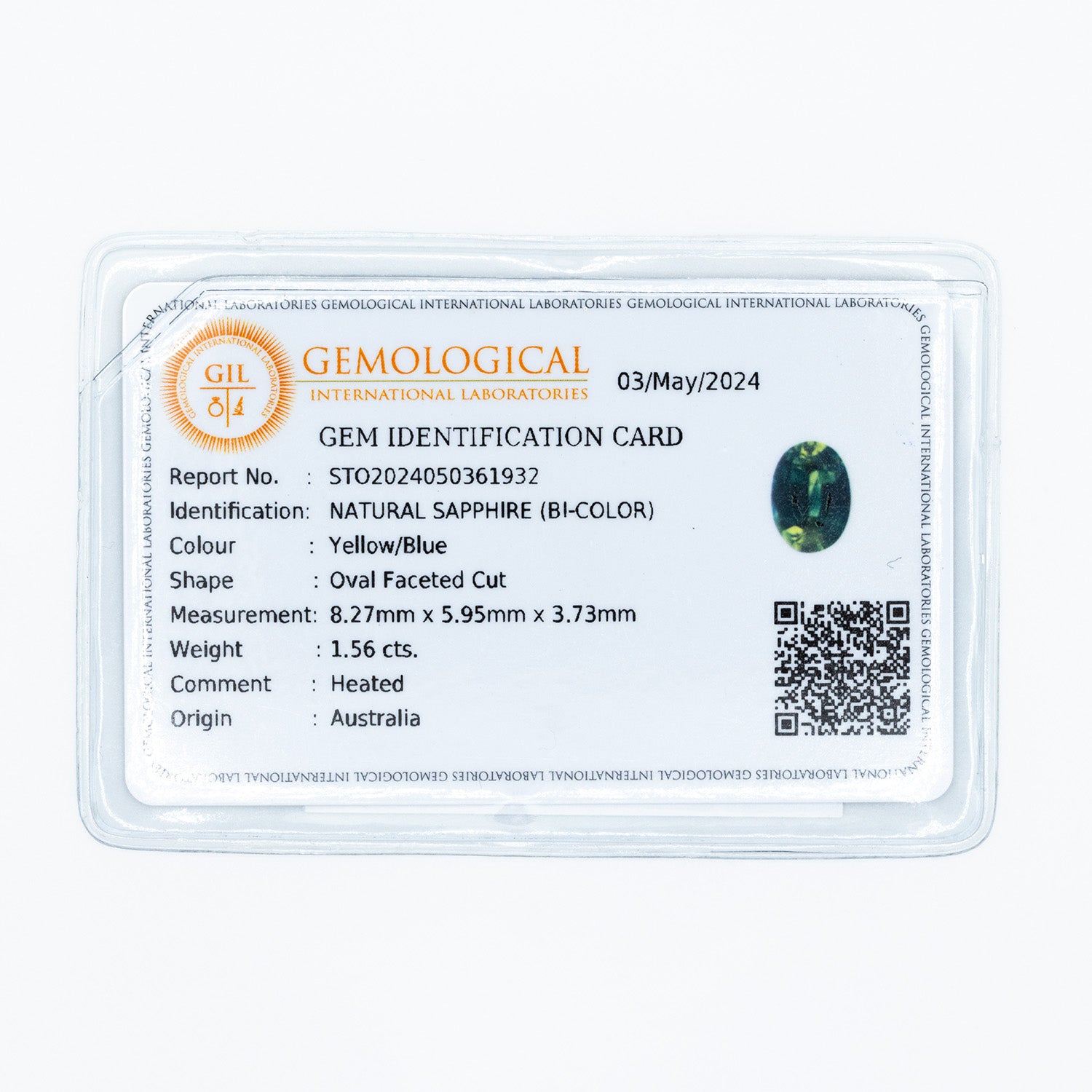 This 1.56ct heat-treated parti color Australian sapphire features a vivid blue-yellow color with exceptional VVS clarity for near-flawless brilliance. Measuring 8.27 mm x 5.95 mm, its striking hues and expert faceting make it a unique and elegant choice for fine jewelry. A rare and ethically sourced gem, perfect for collectors and connoisseurs. Accompanied by certificate issued by Gemological International Laboratories (GIL).