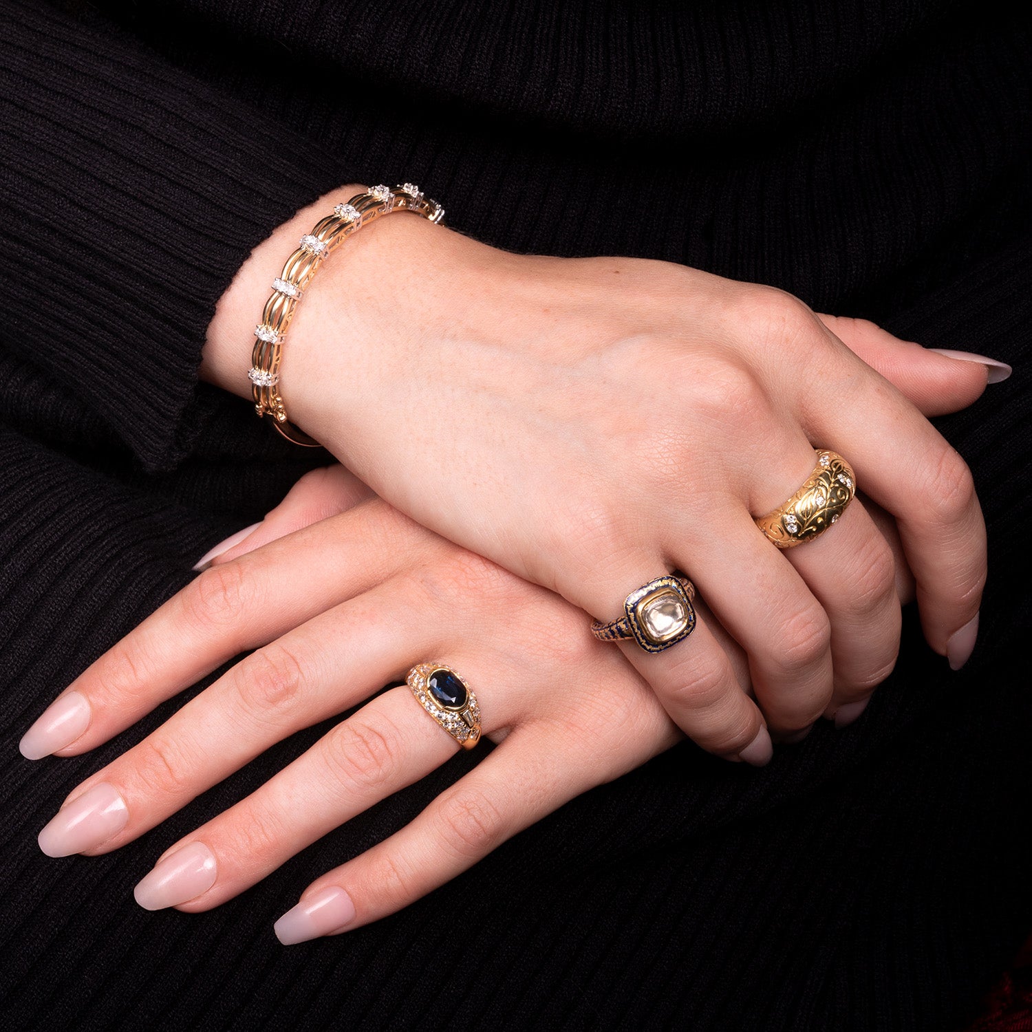 Elegant and timeless, this vintage bangle from the 1980s is crafted in rich 14k gold and accented with sparkling diamonds. Its classic design and graceful proportions offer a beautiful vintage look that pairs effortlessly with both modern and heirloom pieces. Inner diameter measures 53mm.