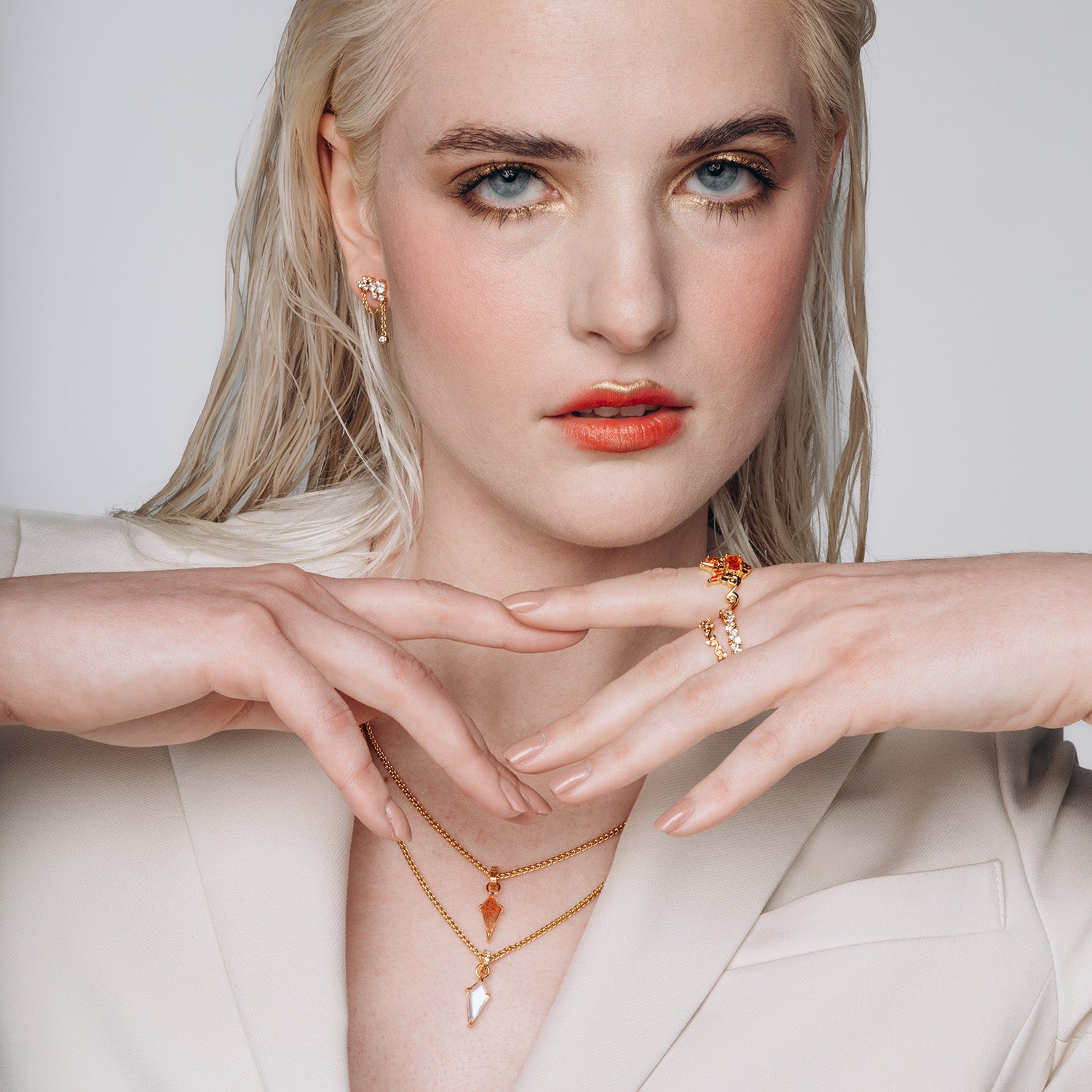 Ptera jewels are meticulously crafted by our artisans using the finest gold and silver. We proudly source all our materials ethically, from the metals to the gemstones, ensuring that every piece reflects our commitment to quality and integrity. Our 18K gold vermeil pieces are made from 925 sterling silver and plated with 2.5 microns of genuine 18K gold — five times thicker and more durable than standard gold plating.