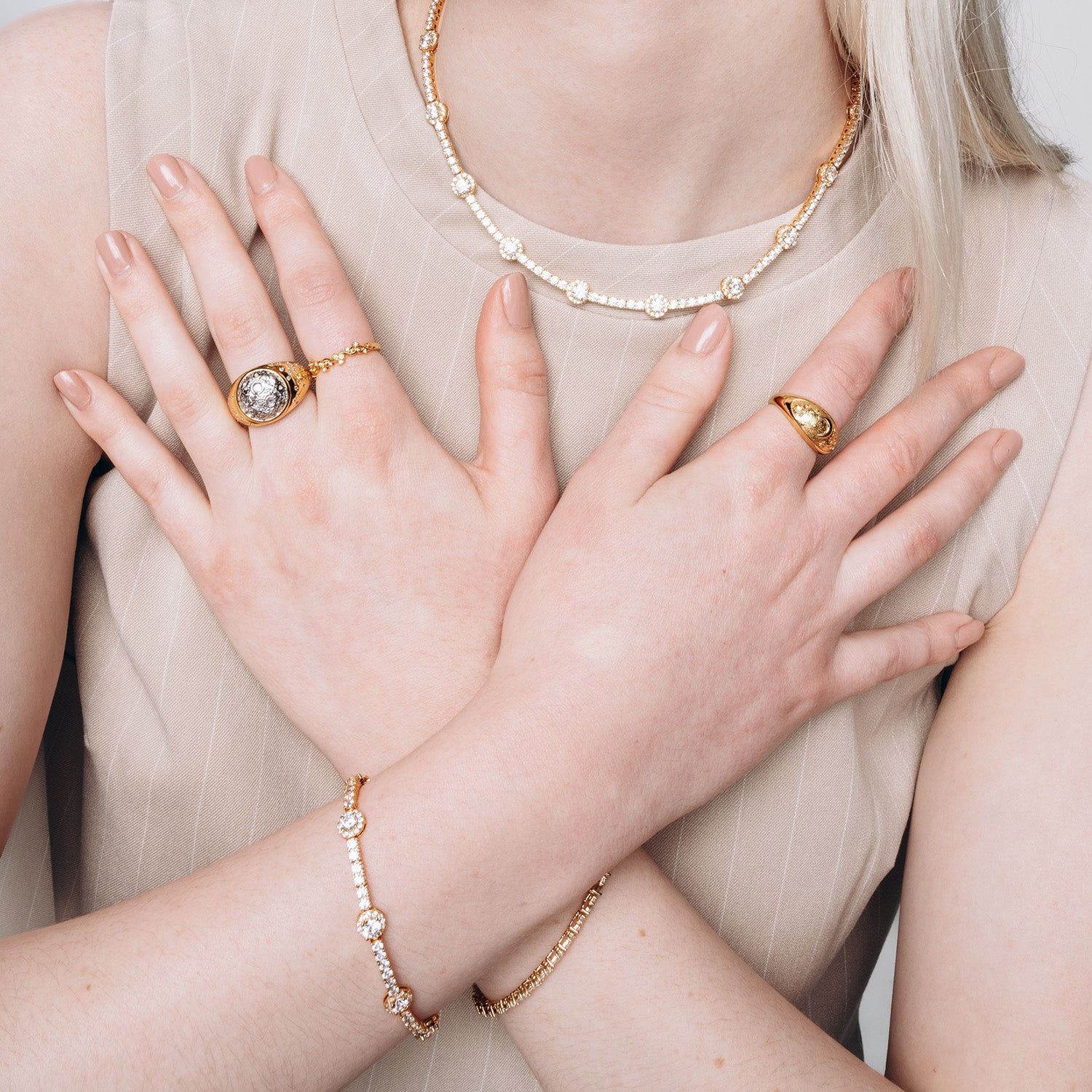 Ptera jewels are meticulously crafted by our artisans using the finest gold and silver. We proudly source all our materials ethically, from the metals to the gemstones, ensuring that every piece reflects our commitment to quality and integrity. Our 18K gold vermeil pieces are made from 925 sterling silver and plated with 2.5 microns of genuine 18K gold — five times thicker and more durable than standard gold plating.