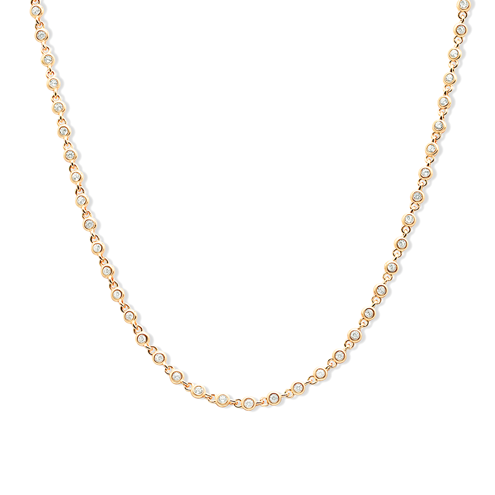 Take your style game to new heights with this exquisite Eternity Line Round-Stone Tennis Necklace. Crafted with a timeless design, this piece adds a graceful touch of glamour to any ensemble. Its delicate stones, easy stack-ability, and classic-yet-modern style offer a sophisticated and elegant look that will never go out of style.