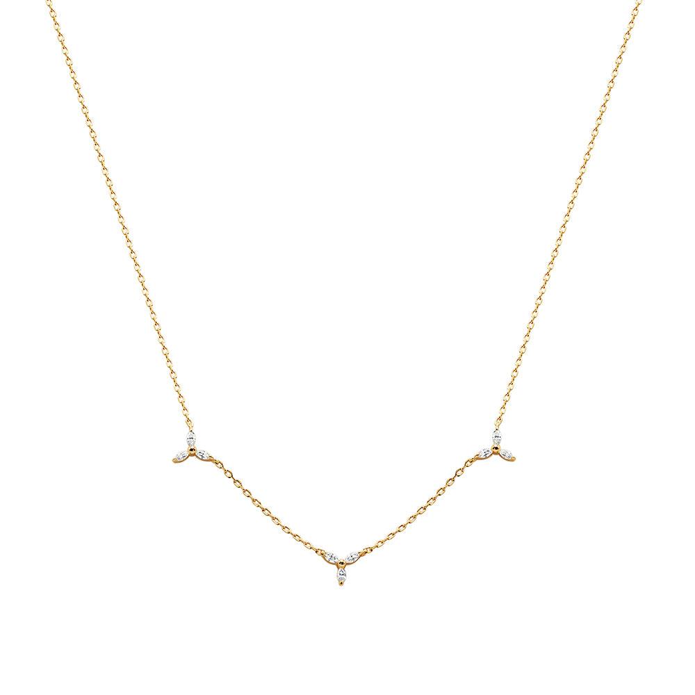Introducing the Floral Trillium Station Necklace - the perfect blend of elegance and versatility. This dainty chain, available in 18k gold vermeil or 925 sterling silver, features a subtle reference to the holy trinity and is adorned with sparkling 5A CZ. Whether worn solo or layered, it adds a touch of sophistication to any outfit. Plus, it's adjustable for a perfect fit.