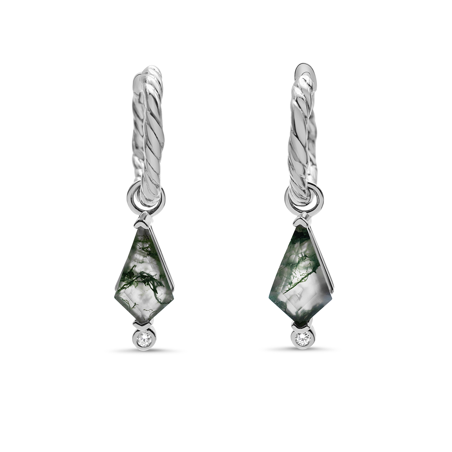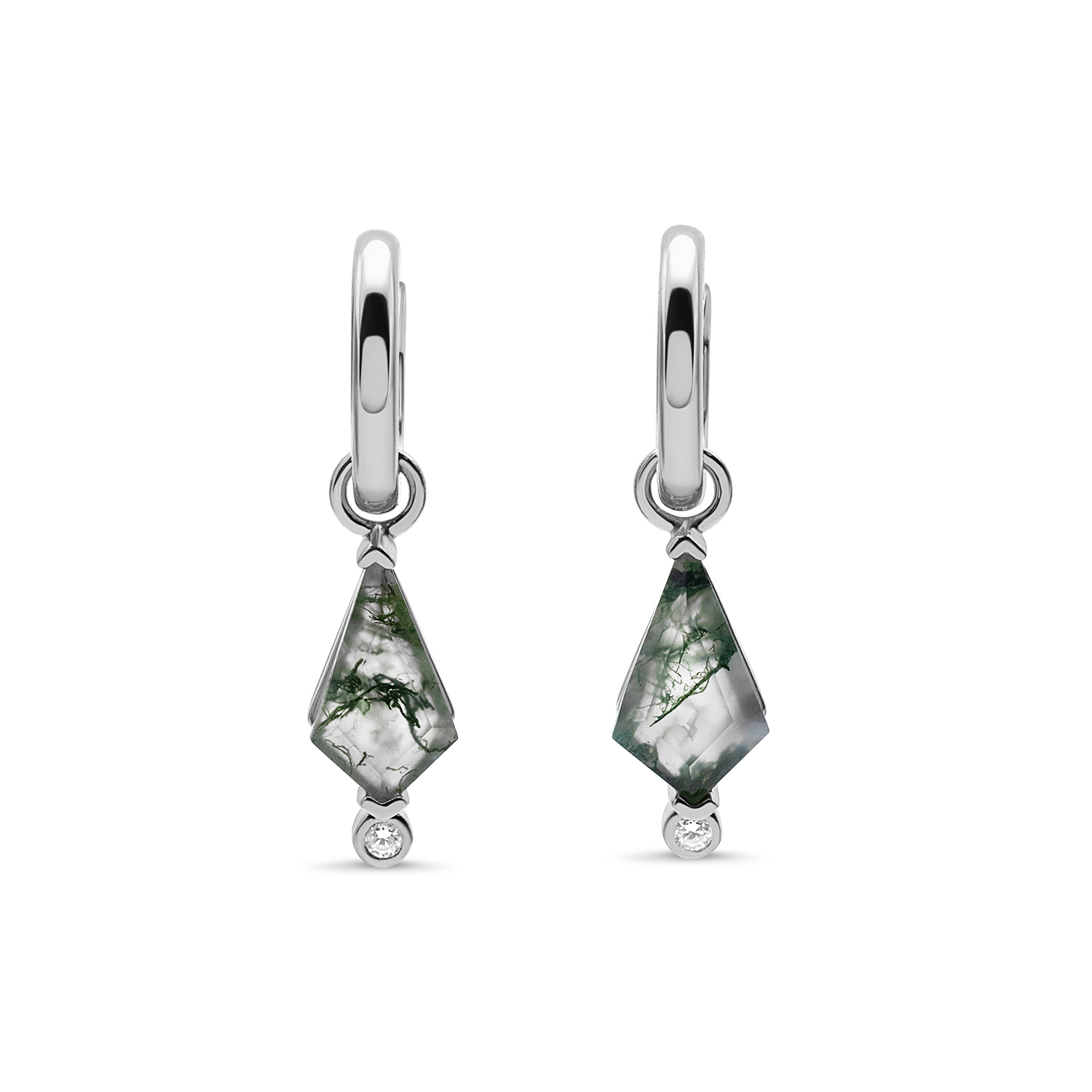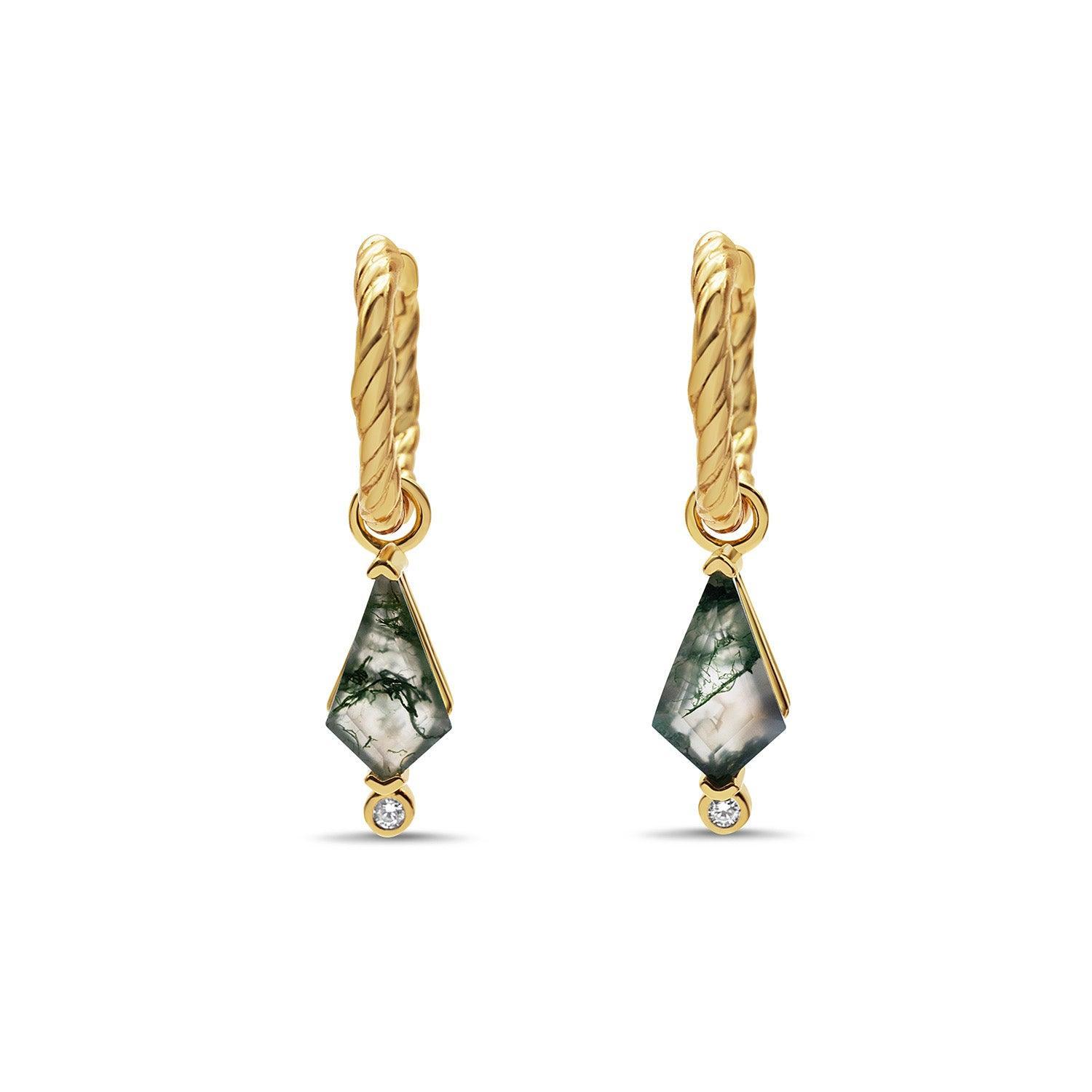Add a touch of nature to your style with our Forest Lover Charm Huggies, crafted with 18K Gold Vermeil and embellished with 5A CZ and Natural Green Moss Agate. Channel your inner Athena and bring a touch of nature to your look.