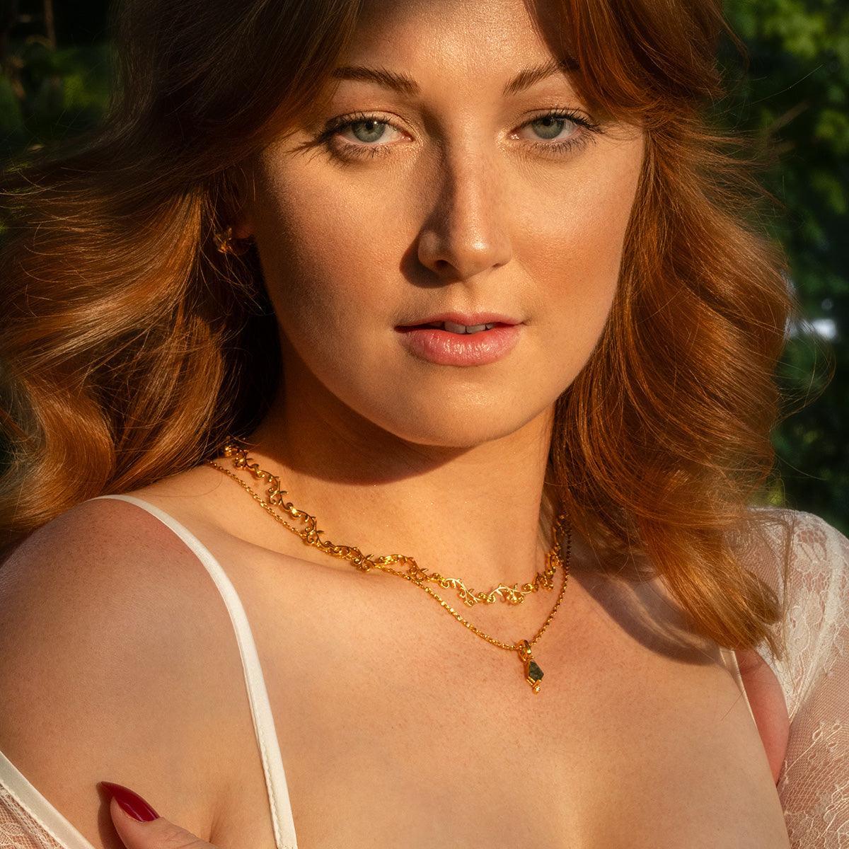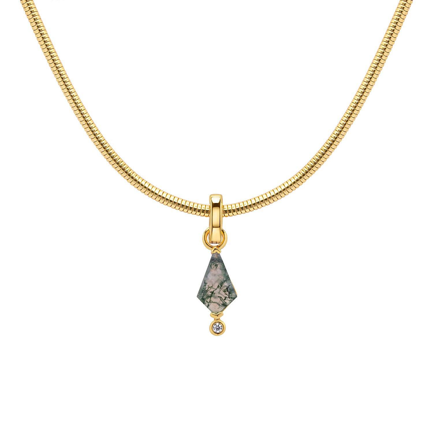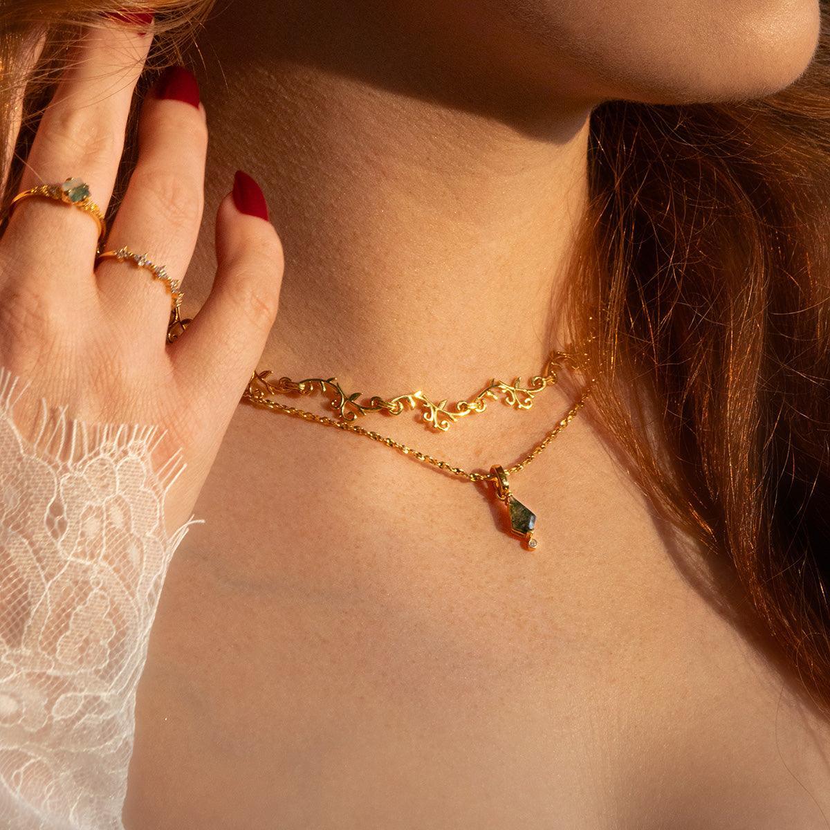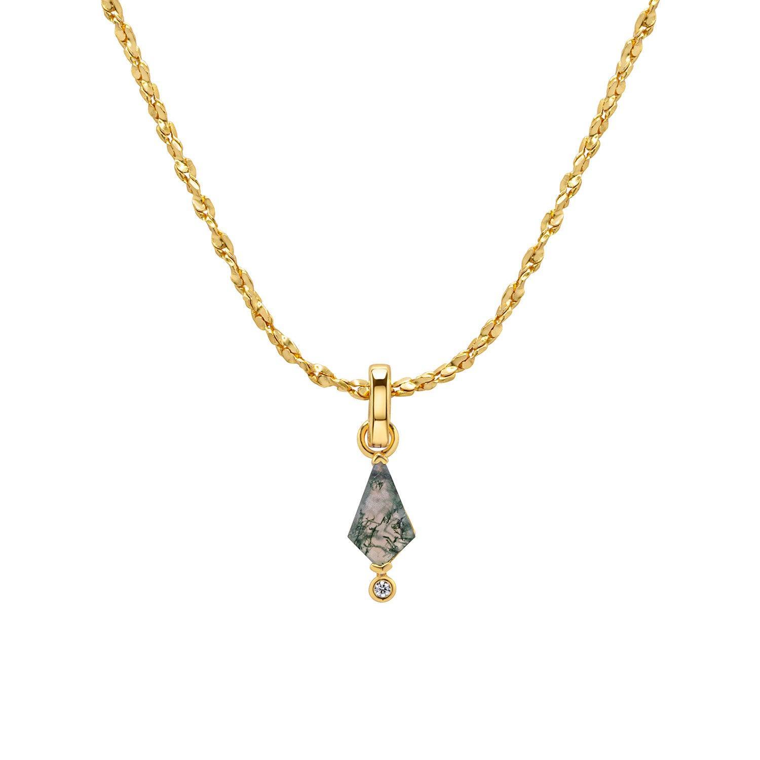 Experience the delicate beauty of the forest with the Forest Lover Pendant Necklace. Crafted with 18k gold vermeil and natural moss agate, this necklace embodies the tranquility and richness of the forest. Customize your fit with your choice of adjustable chain.