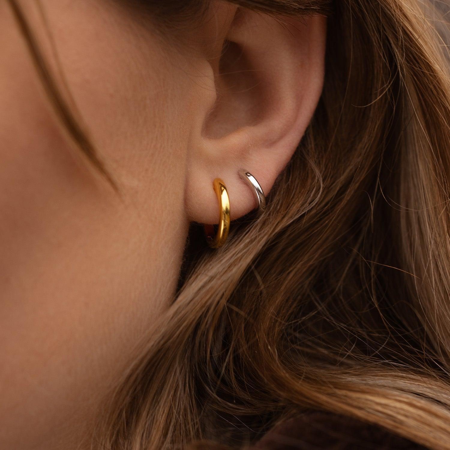 Stay chic and uncomplicated with our Slim Minimalist Huggies. Choose from rhodium plated sterling silver or 18k gold vermeil for a timeless addition to your jewelry collection.