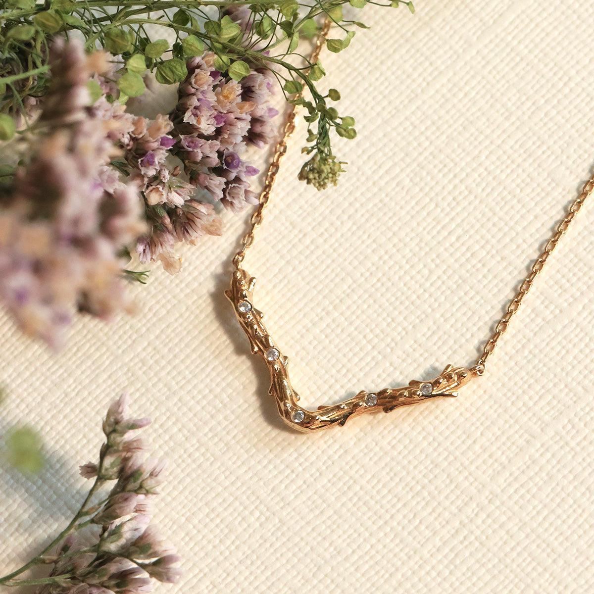 Inspired by nature’s grace, this pendant necklace features a finely contoured tree branch that highlights your collar bone with subtle elegance. Whether worn alone or stacked, this piece brings a touch of organic charm to any look, embodying the perfect balance of simplicity and sophistication. A tribute to Earth’s natural beauty, it offers an adjustable fit for effortless comfort and versatile layering.