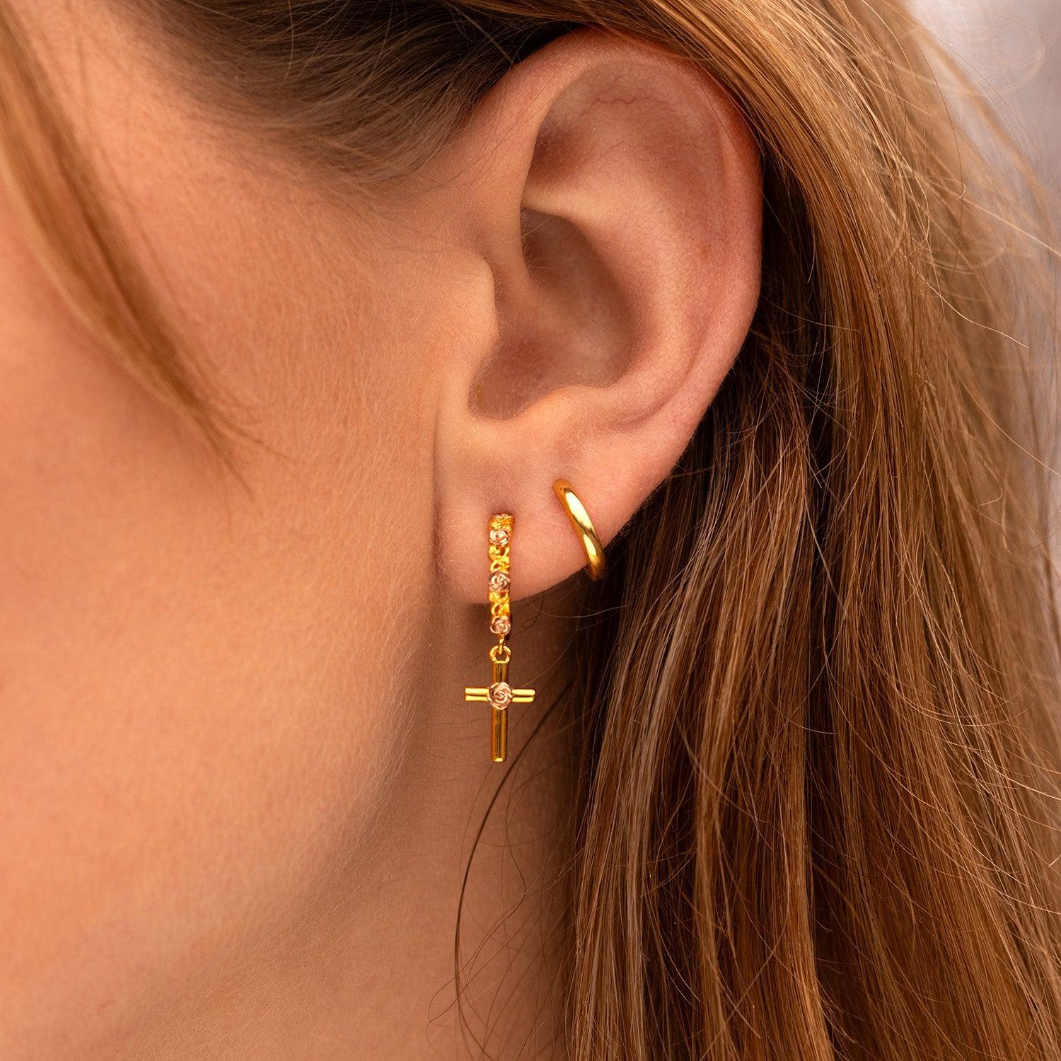 Rose-Kissed Cross Earrings