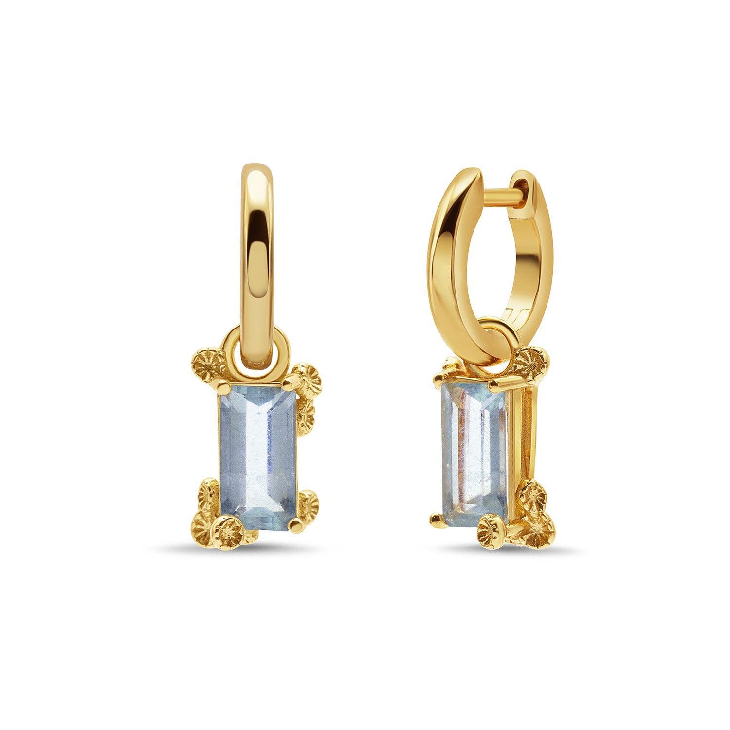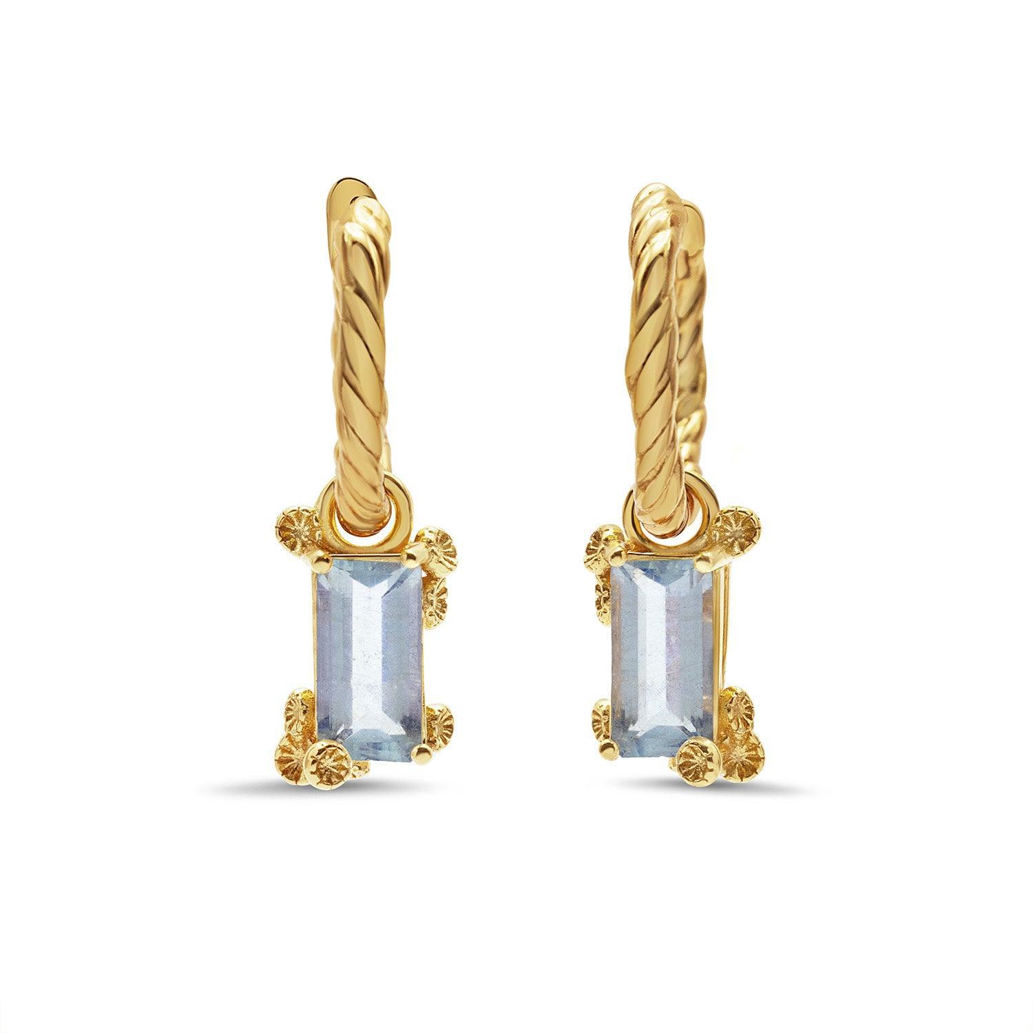 Discover the calming essence of our Seaside Serenity Huggies, featuring natural aquamarine gems and sea encrustation motifs that embody the beauty of the ocean. The perfect complement to any ocean enthusiast's accessory assortment. Offered in both 18K Gold Vermeil and 925 Sterling Silver.