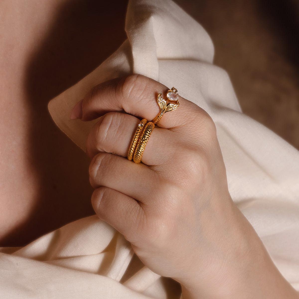 Add a touch of texture and fantasy to your ring collection with the Sirena Chunky Band. Adorned with intricately designed mermaid scales, this enchanting piece is perfect for fairytale lovers while maintaining a timeless appeal for fashionistas. Embrace the magic of the ocean and elevate your style with a ring that seamlessly blends whimsical charm with everyday elegance.