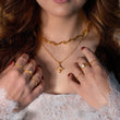 Ptera jewels are meticulously crafted by our artisans using the finest gold and silver. We proudly source all our materials ethically, from the metals to the gemstones, ensuring that every piece reflects our commitment to quality and integrity. Our 18K gold vermeil pieces are made from 925 sterling silver and plated with 2.5 microns of genuine 18K gold — five times thicker and more durable than standard gold plating.