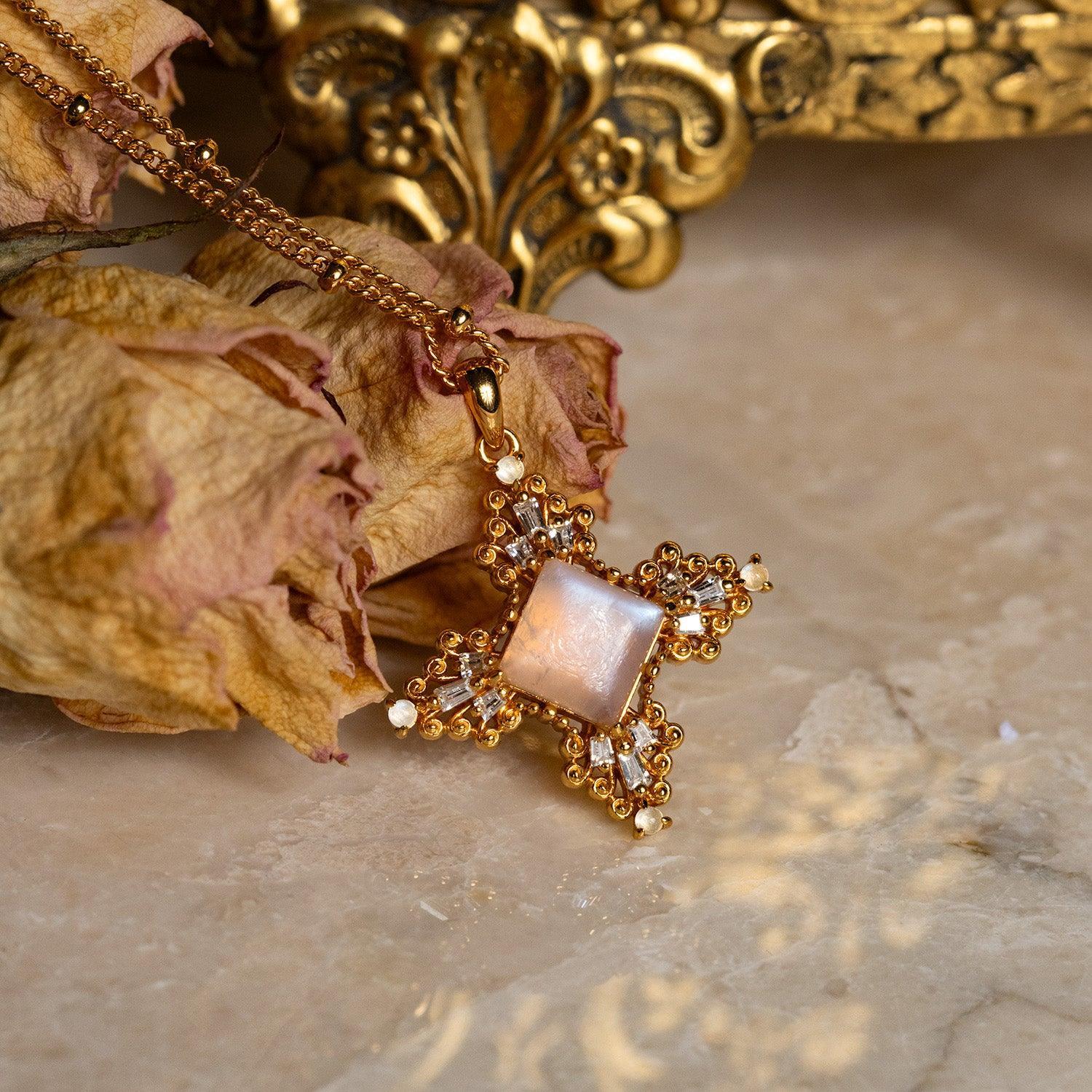 Embrace vintage charm with our Victorian Moonstone Pendant Necklace. Showcasing a mesmerizing iridescence, its synthetic moonstone gems are set in a vintage-inspired design that will make you feel like modern day royalty. Made adjustable for a comfortable fit and stacking versatility.
