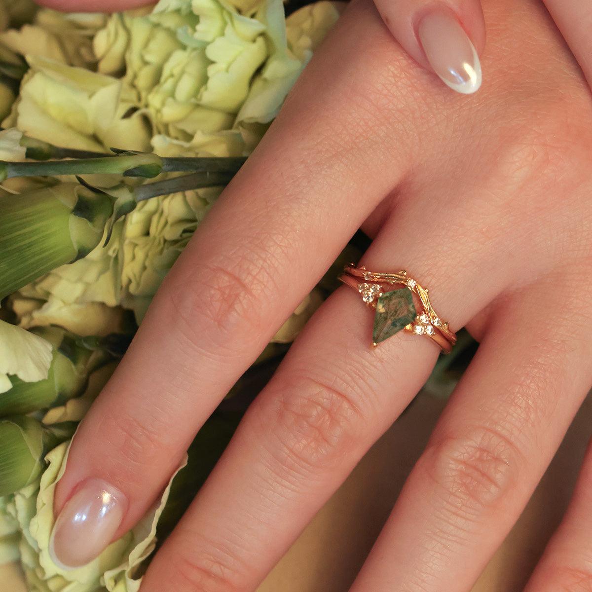 Elevate your jewelry collection with the Knight's Plume Moss Agate Ring, featuring a stunning moss agate centerpiece that beautifully captures nature's essence. Whether worn solo for a bold statement or stacked with your favorite rings, this piece is a must-have for nature lovers. Its unique design invites admiration and makes it the perfect accessory for any occasion.