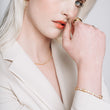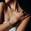 Inspired by the brilliance of star clusters, our To the 9's Tennis Necklace captures the mesmerizing beauty of the night sky. A constellation of 5A cubic zirconia is carefully arranged to mimic celestial formations, creating a luminous, otherworldly sparkle. Crafted in your choice of 18K gold vermeil or rhodium-plated sterling silver, this radiant piece measures 42cm in length, designed to sit elegantly along the neckline. Secured with a sleek open box clasp, it offers a seamless blend of cosmic allure and timeless sophistication. A celestial statement perfect for any occasion.
