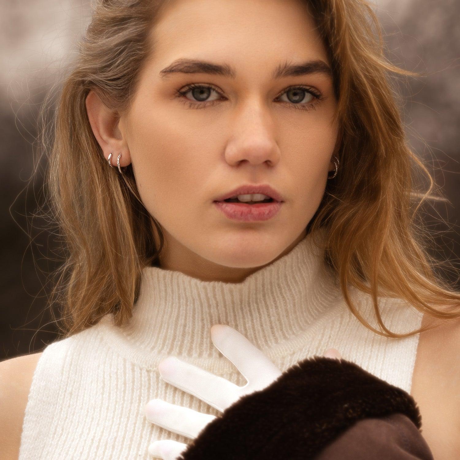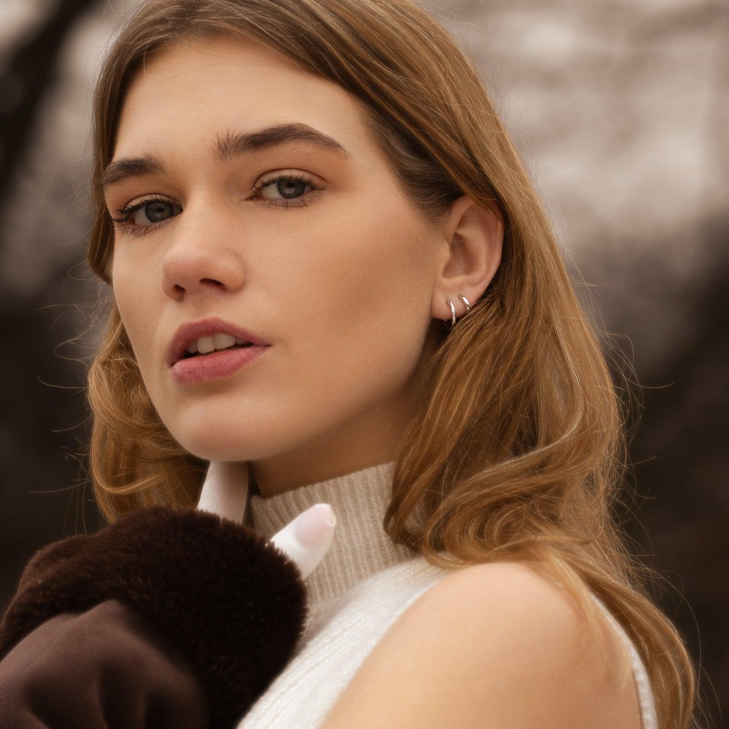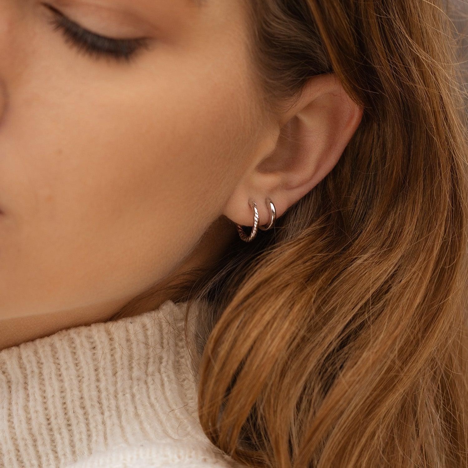 Stay chic and uncomplicated with our Twisted Slim Minimalist Huggies. Choose from rhodium plated sterling silver or 18k gold vermeil for a timeless addition to your daily look.